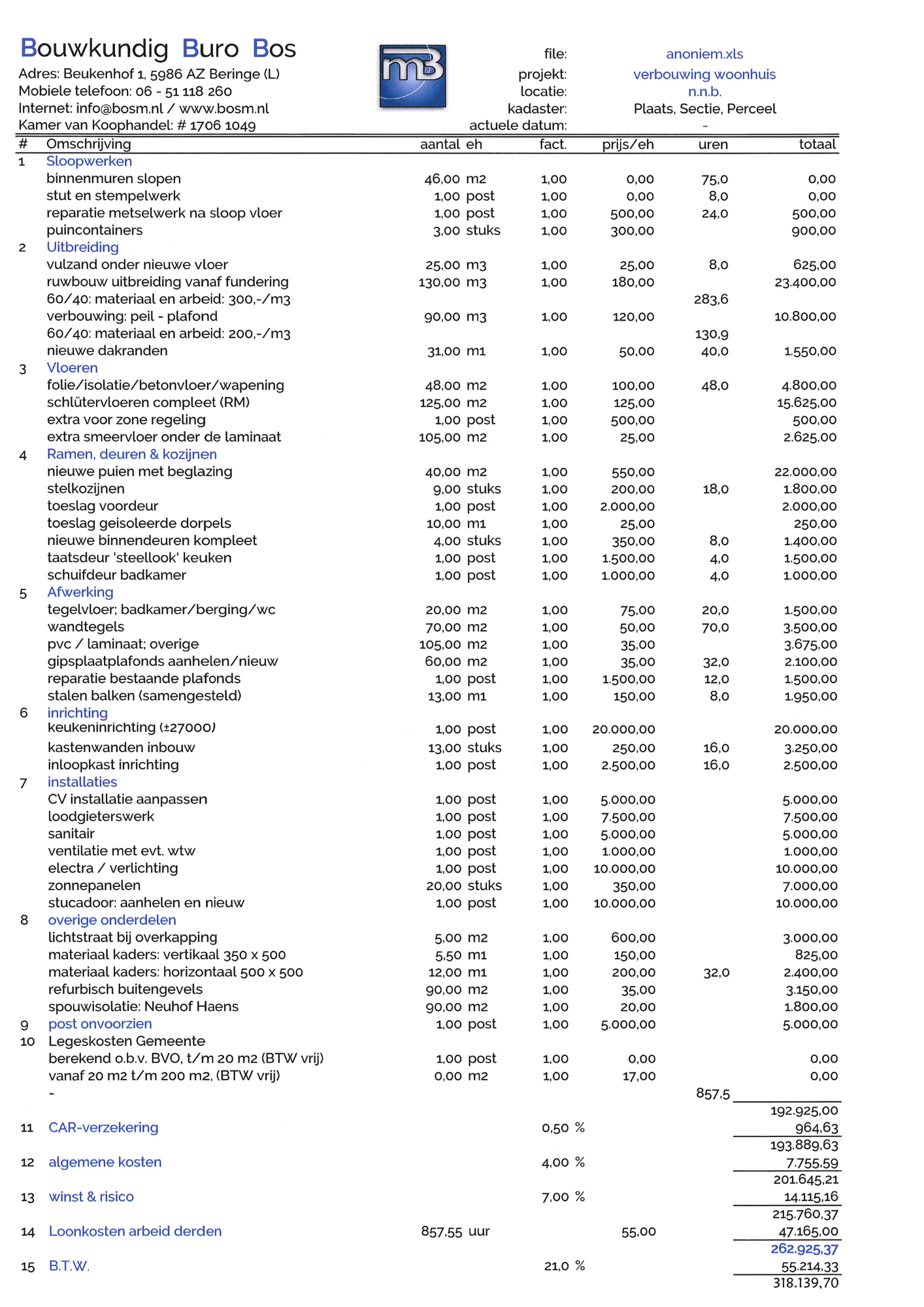 > uitwerken van uitgebreide bouwkundige rapportage